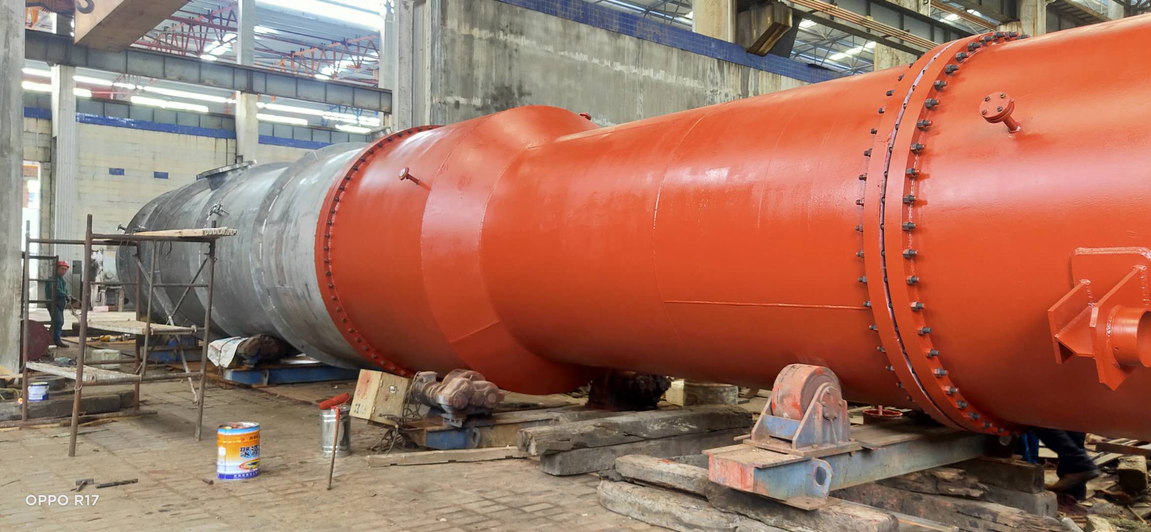 設(shè)備下段材質(zhì):純鈦TA2,直徑2400mm,設(shè)備總長(zhǎng)20米。